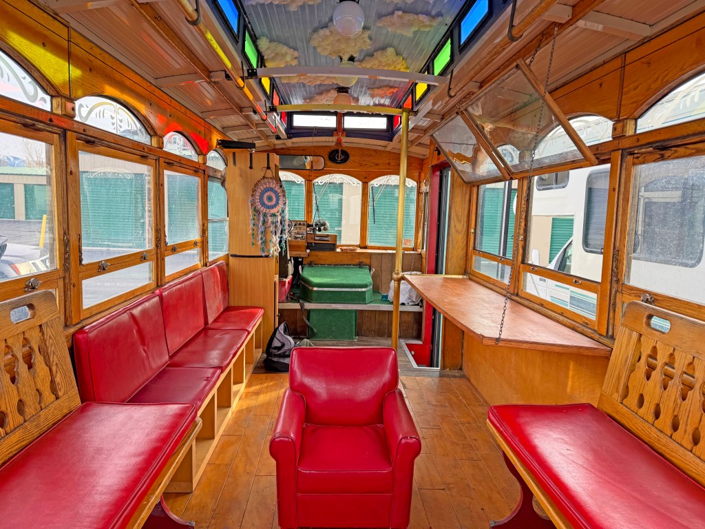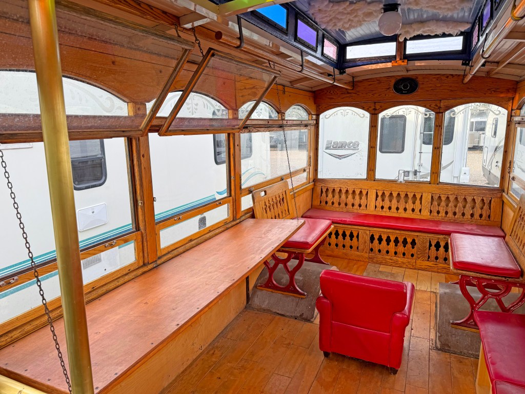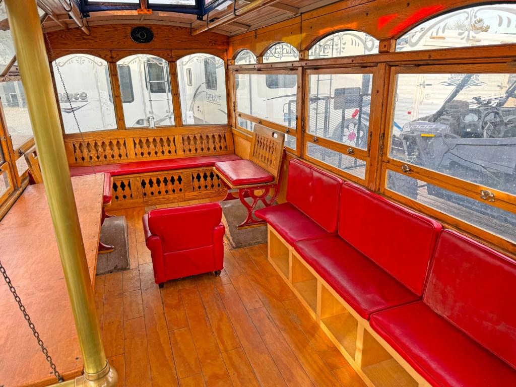 Headquartered in Reno, the Tahoe trolley party bus is designed for comfort, entertainment, and flexibility, making it ideal for groups of up to 20 party goers, with tables and chairs available for outdoor spaces.